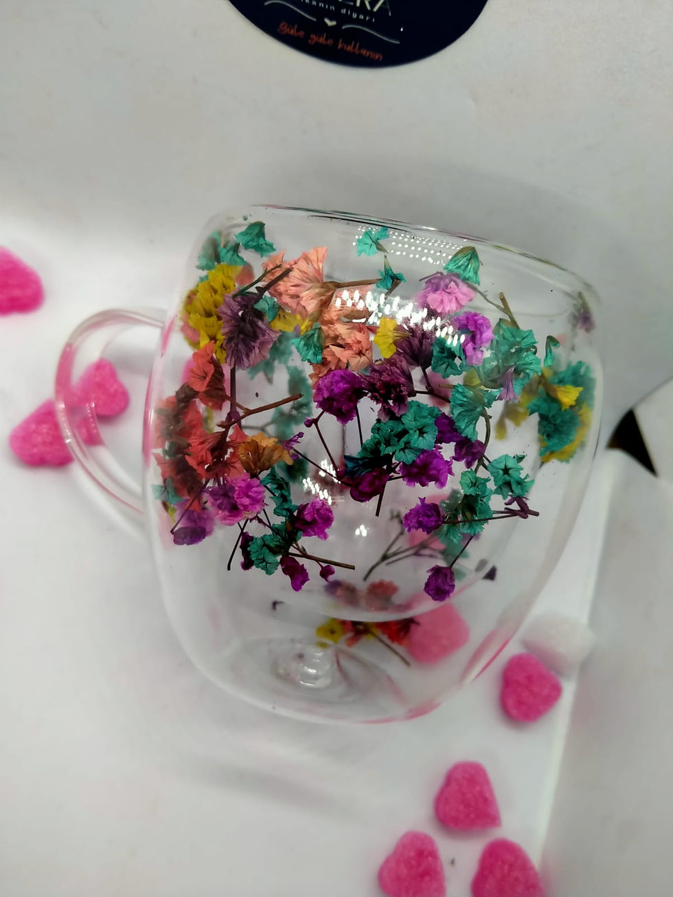 Isıya Dayanıklı Çift Çidarlı Kurutulmuş Canlı Çiçekli Kupa (Karışık)